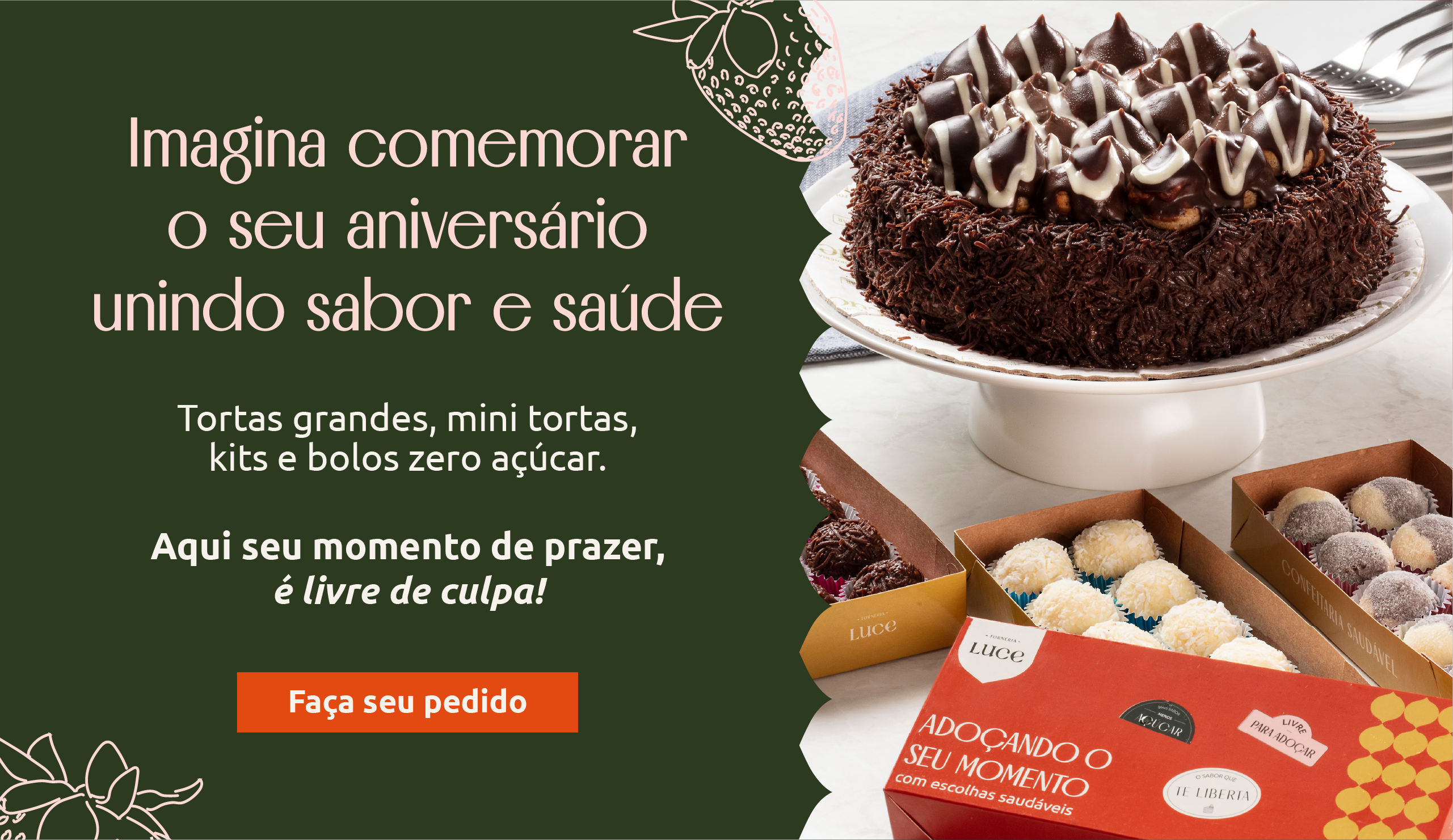 Somos uma confeitaria saudável que nasceu em 2006, com o propósito de levar liberdade para pessoas com restrições alimentares ou que buscam uma alimentação saborosa, sem deixar de lado sua saúde e dieta. Aqui, você encontra desde um lanche rápido para o dia a dia, àquela torta para uma confraternização especial.